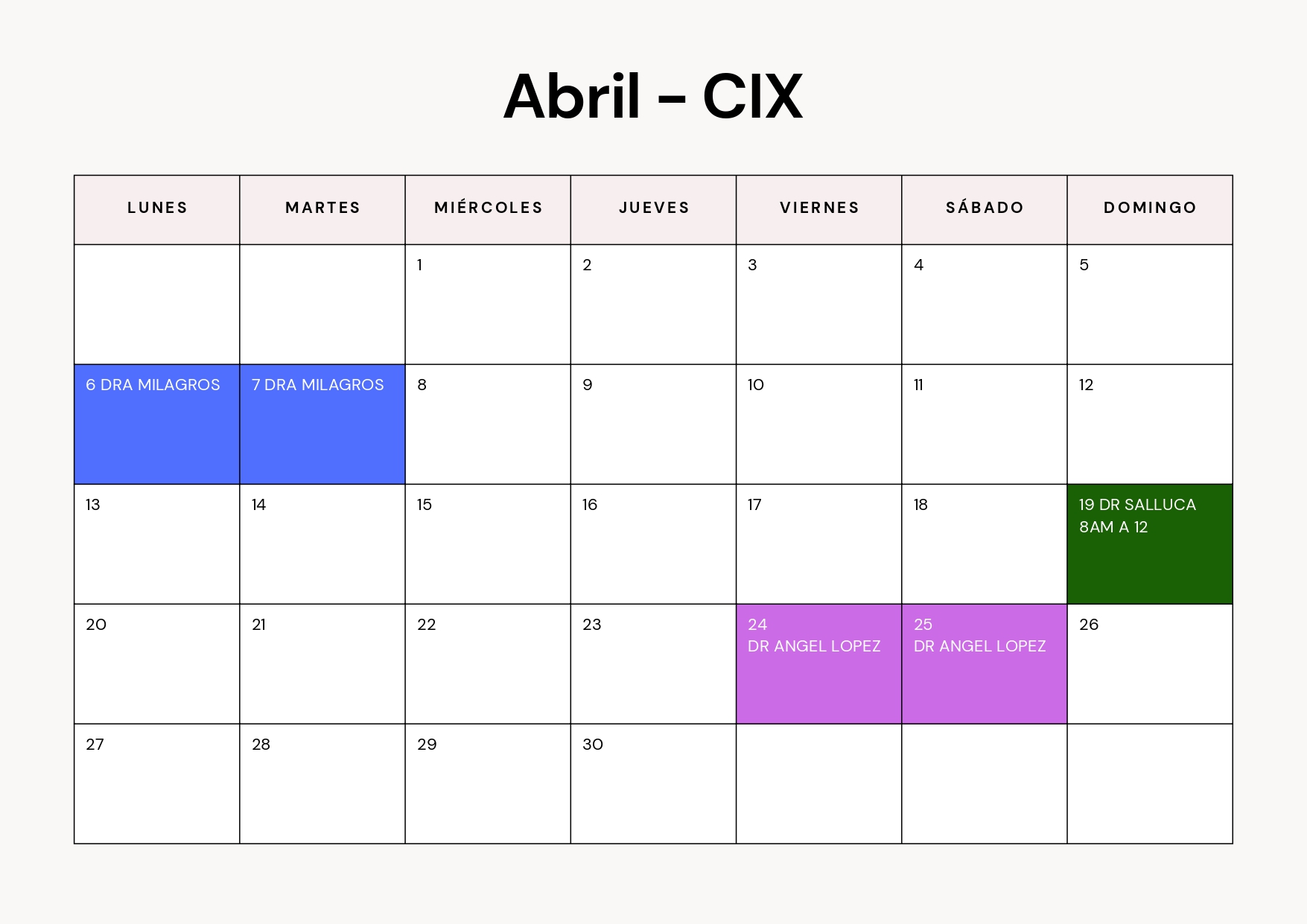 Consulta el calendario de atención médica correspondiente a nuestra sede DermaPiel – Comas. Aquí podrás ver qué médicos atienden cada día del mes y planificar tu visita con anticipación.